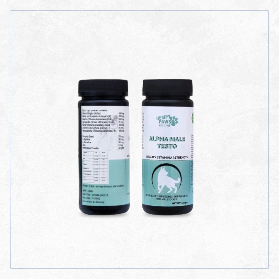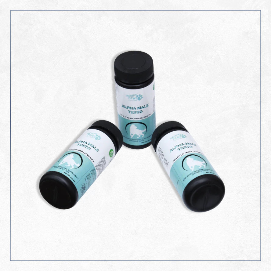 At Happy Paws, we understand that stud dogs have unique needs. That’s why happy paws developed alpha male testo, a breeding supplement that provides herbal ingredients and nutrients to help support the breeding demands of stud dogs. Formulated with a unique blend of herbs, this supplement helps support reproductive capacity in breeding males by promoting stamina and supporting sperm production and motility.