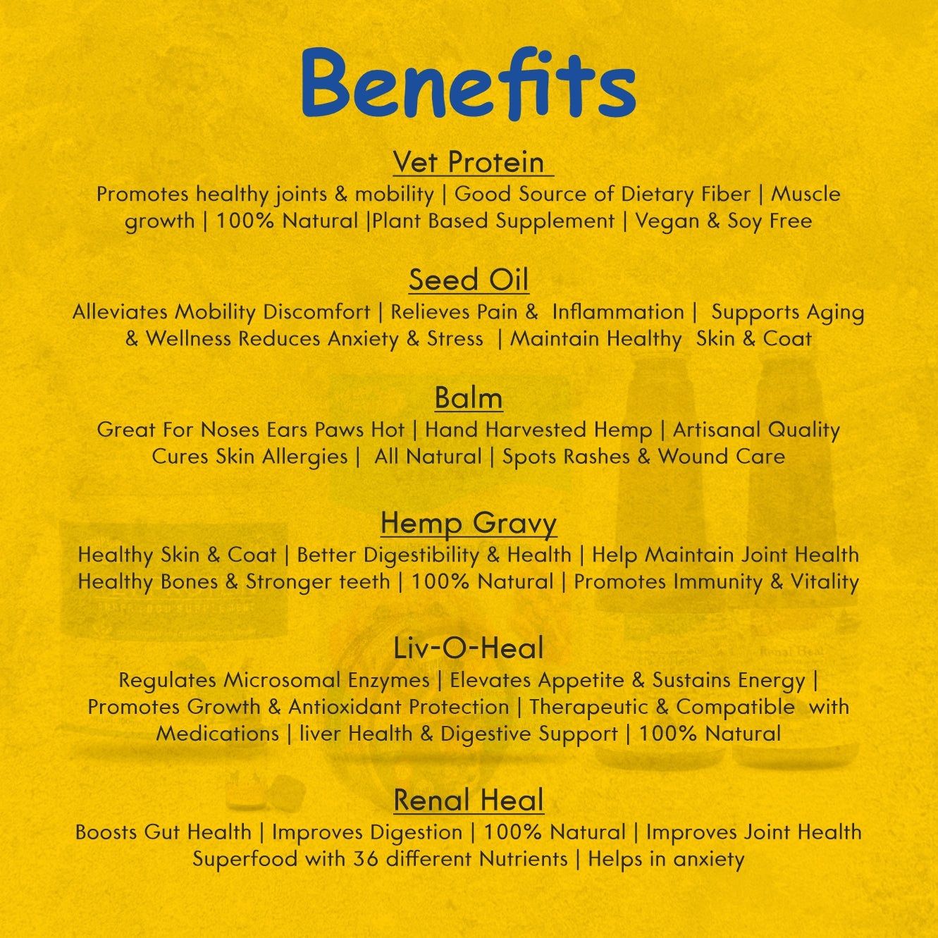 ⁠Heempypaws pet’s care complete care hamper :- (hemp seed oil + Vet Protein + hemp balm + liv-o-heal + Renal Heal + Hemp Gravy )