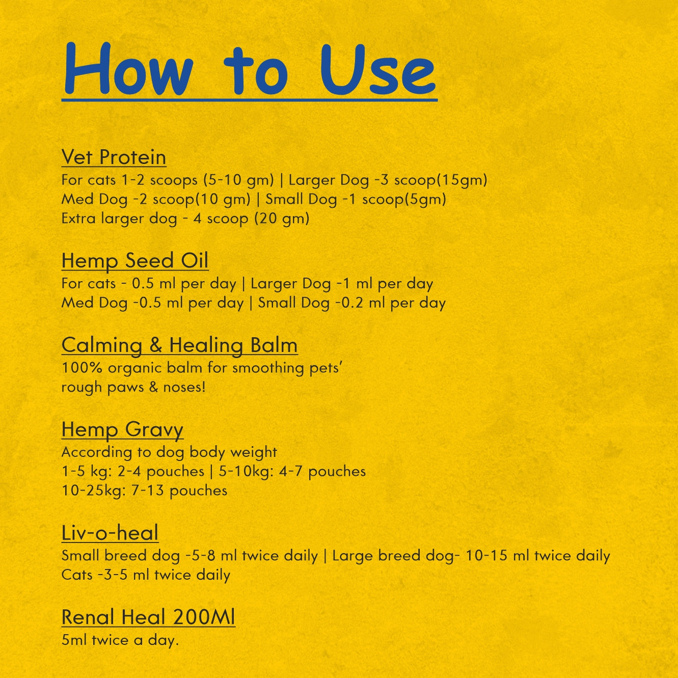 • Cats -3-5 ml twice daily