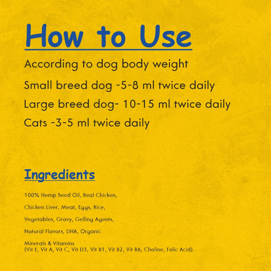 • Cats -3-5 ml twice daily